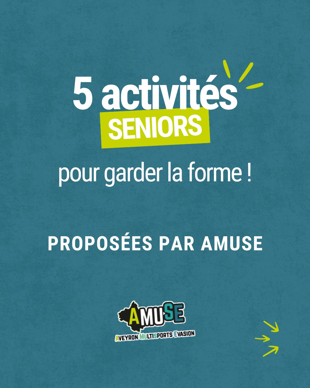 La pratique régulière d’une activité physique a des effets bénéfiques à tout âge notamment pour les seniors. Chez Aveyron Multi-Sports Evasion, nous proposons chaque semaine des activités adaptées pour entretenir sa forme, prévenir les chutes et garder le moral !